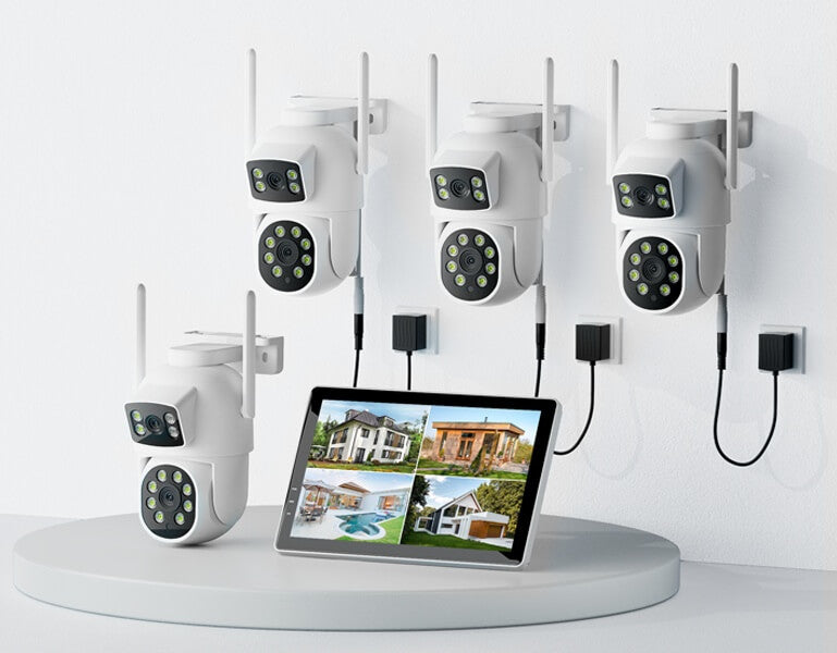 - 4x Wired WiFi Outdoor PTZ Cameras (with DC12V/1A Power Supply)