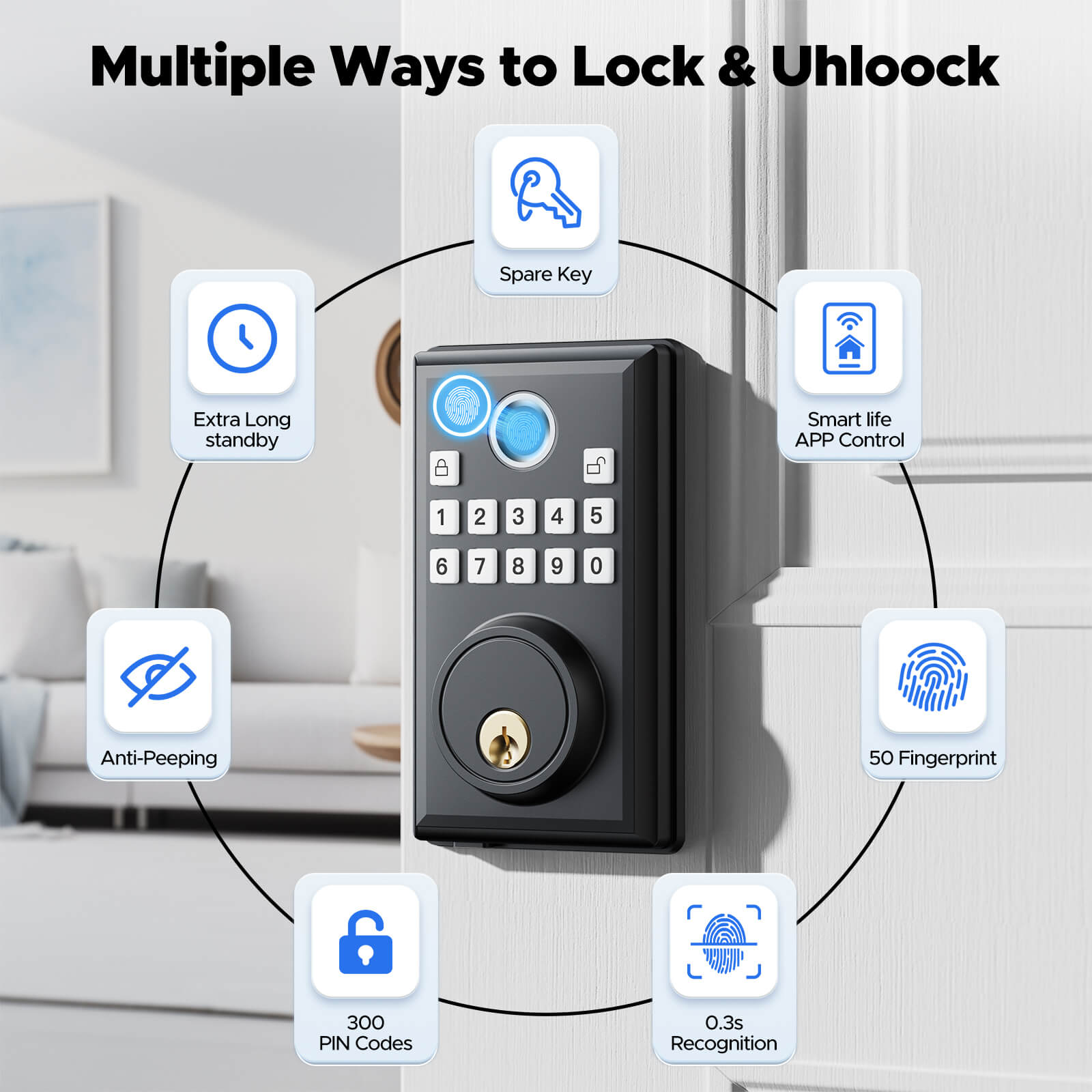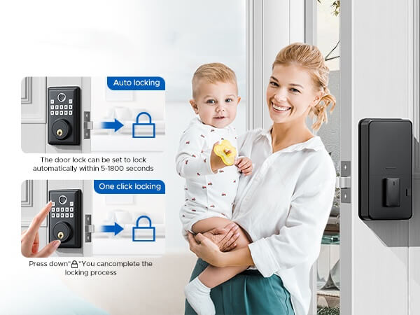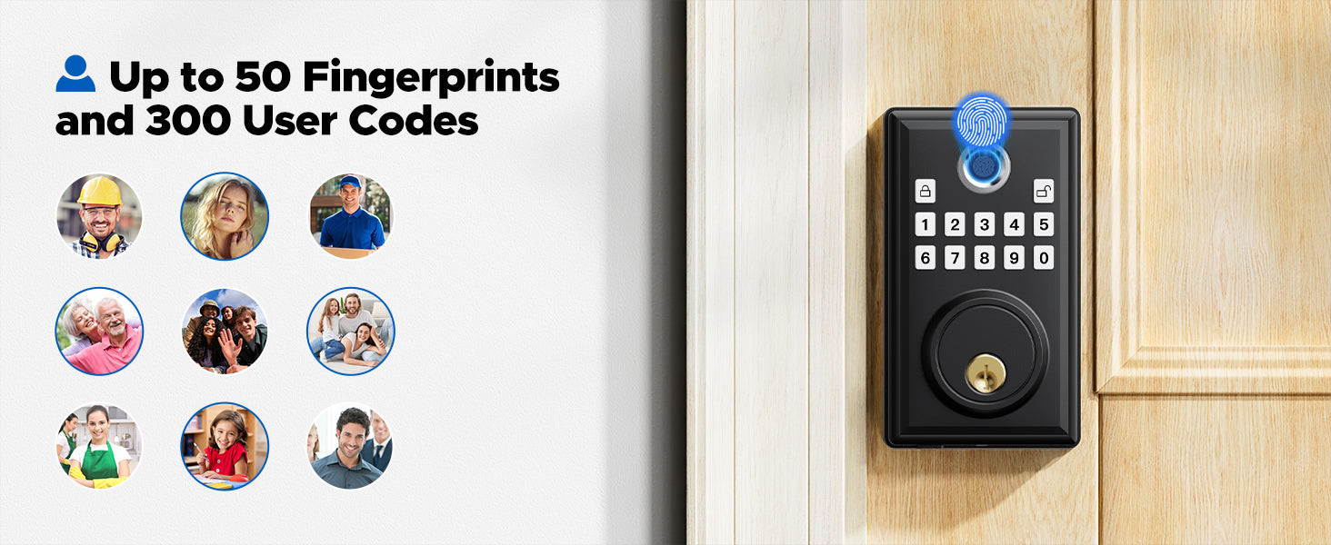 Supports up to 300 passwords, 50 fingerprints,allowing you to generate a one-time 6-digit code at any time and easily share it with family and friends for keyless entry.