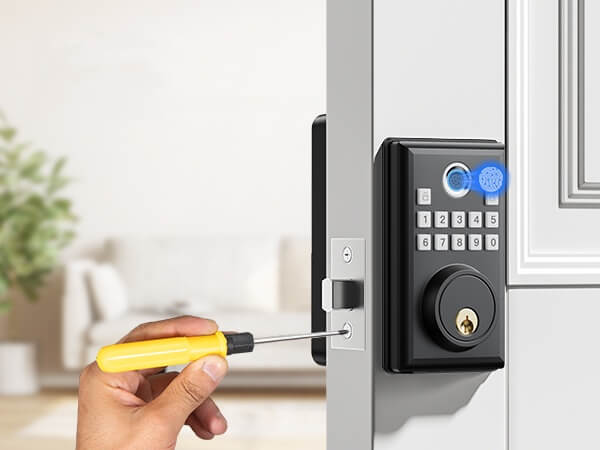Camcamp Smart Door Lock, Fingerprint Keyless Entry Door Lock with Keypad(Built-in 4 AA batteries)
