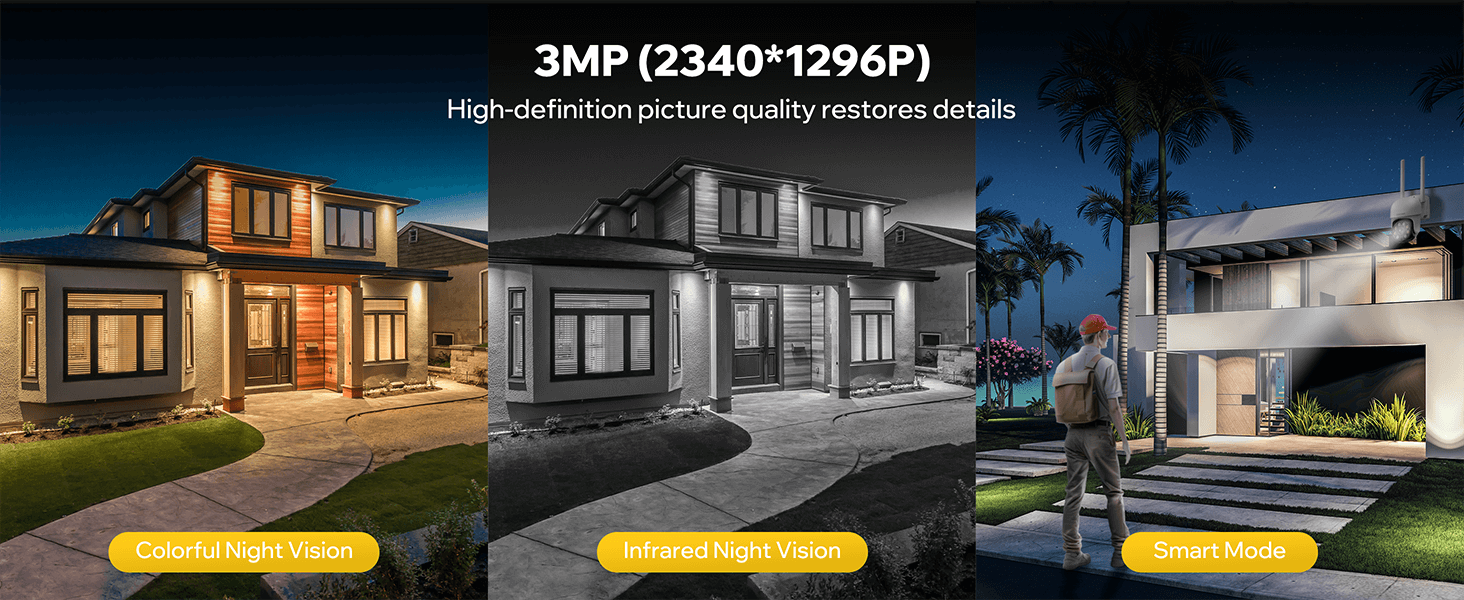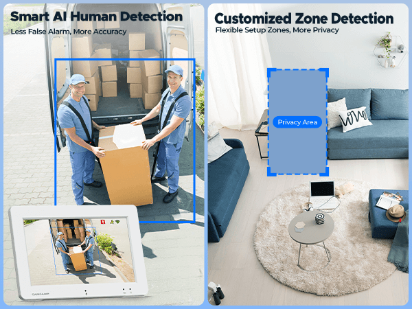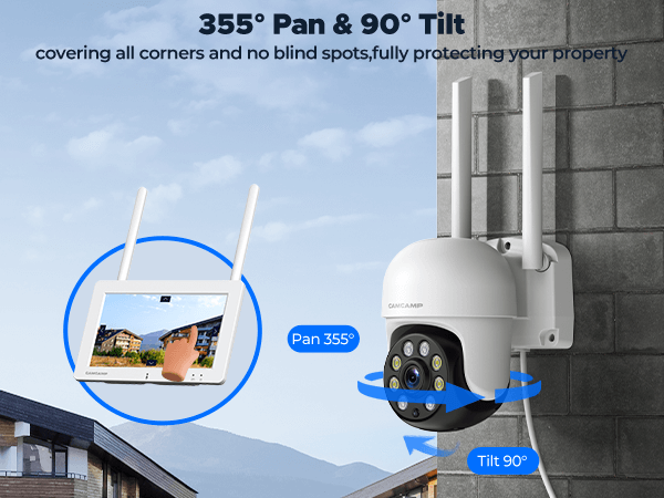 Both ptz security cameras wireless cover a pan 355-degree, tilt 90-degree full monitor area, no blind corner. You can also click to zoom in freely to get more details.