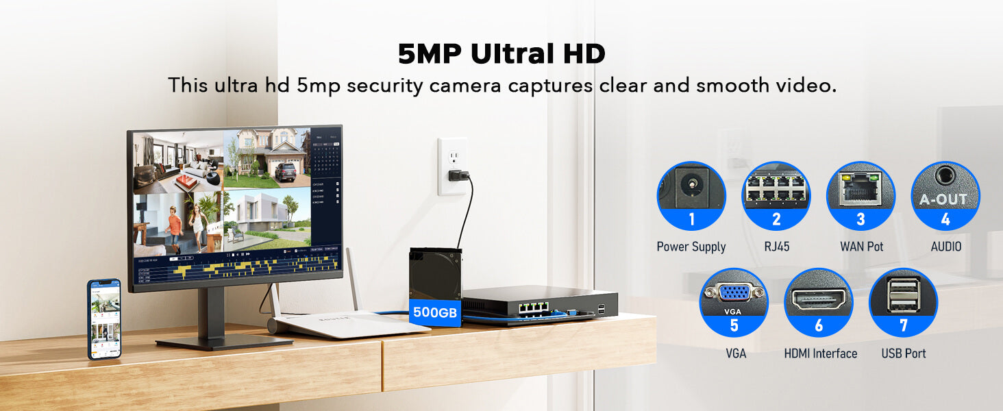 - 1x 8CH PoE NVR(Pre-installed 500GB HDD)