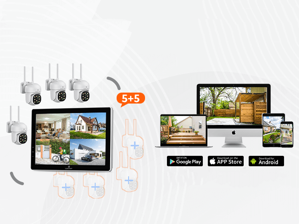 Camcamp SC37 WiFi PTZ Wireless Home Security Cameras System with 10.1"LCD Monitor