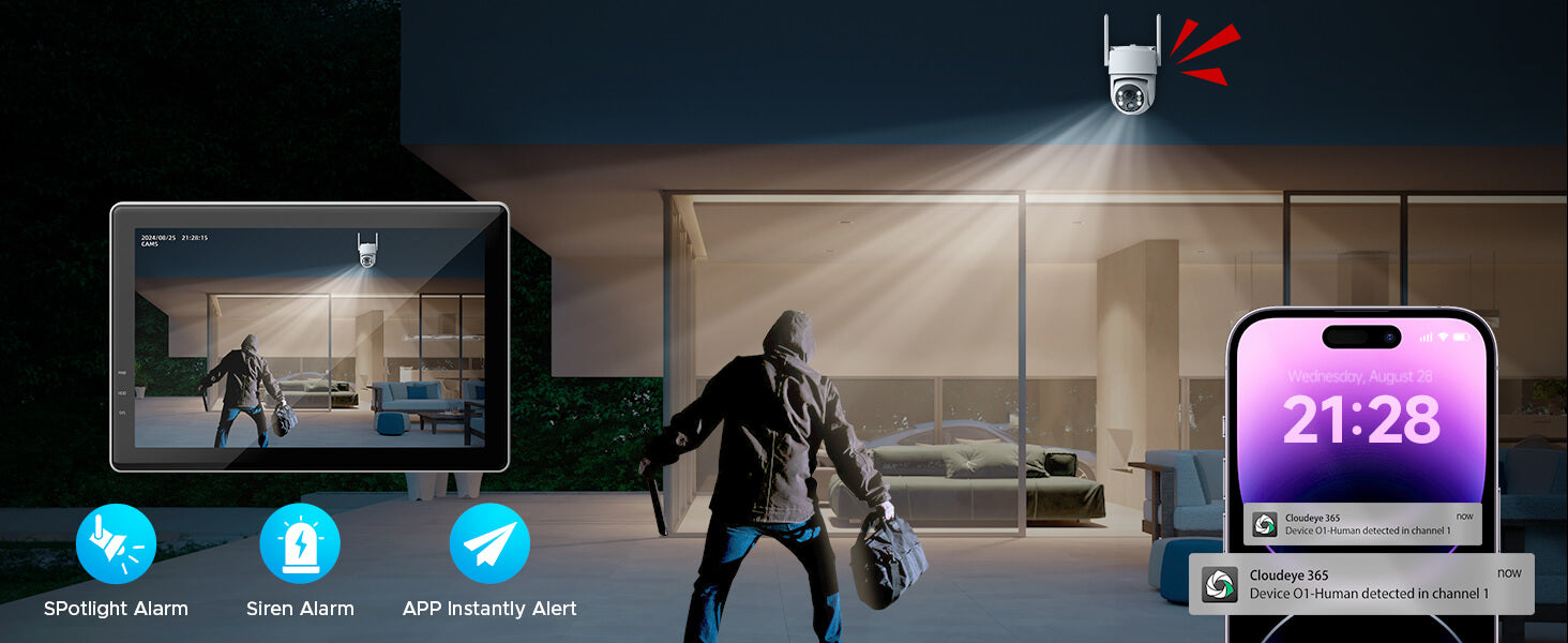 designed with an advanced CMOS sensor and spotlight ensure super clear full-color images in the dark night.