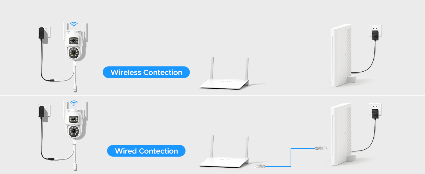 - The connection protocol of the home security external camera is: 2.4/5G Wi-Fi
