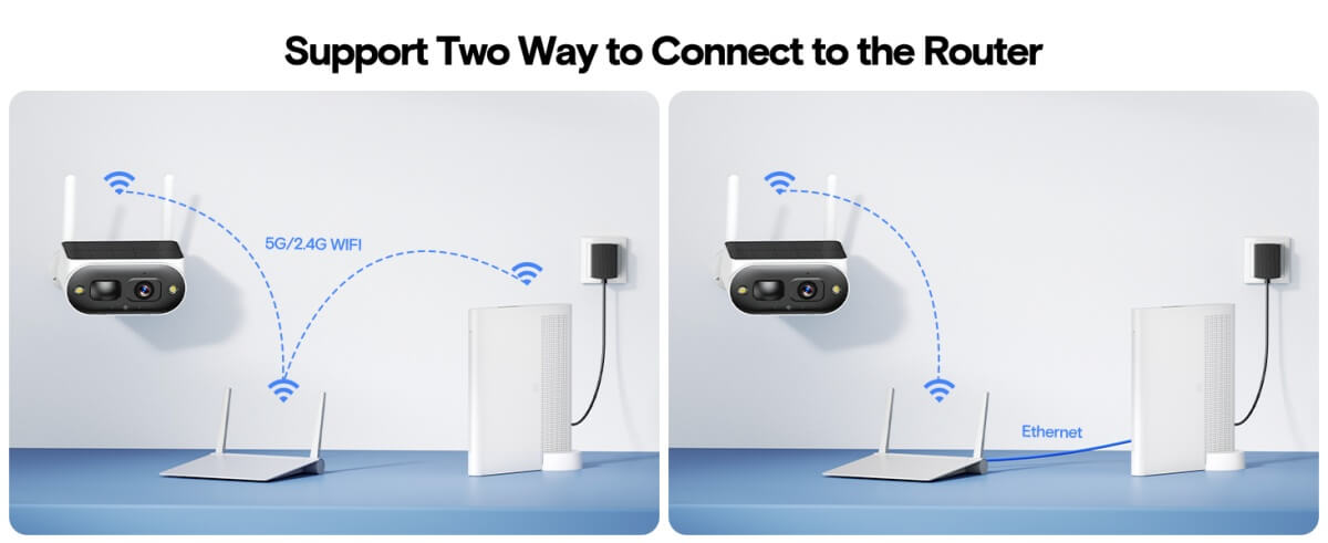 The wireless solar security camera system outdoors adopts a 1/2" COMS sensor, 3D Digital Noise Reduction tech, delivering 2K/4 MP (2460*1440 P) HD images.