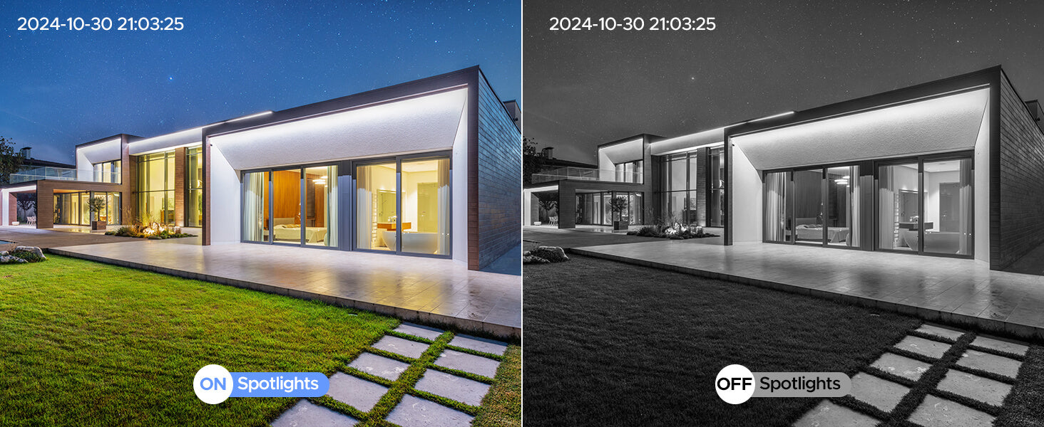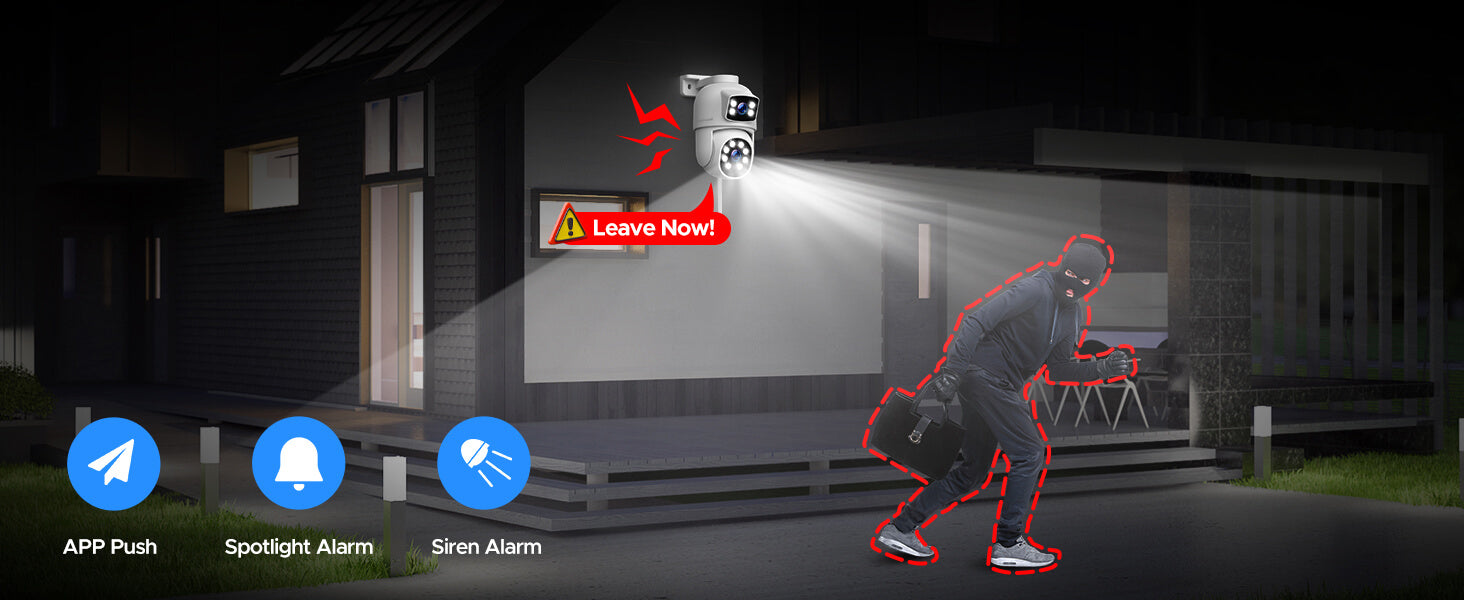 When suspicious motion is detected,it will turn on the spotlights/siren alarm to deter intruders.