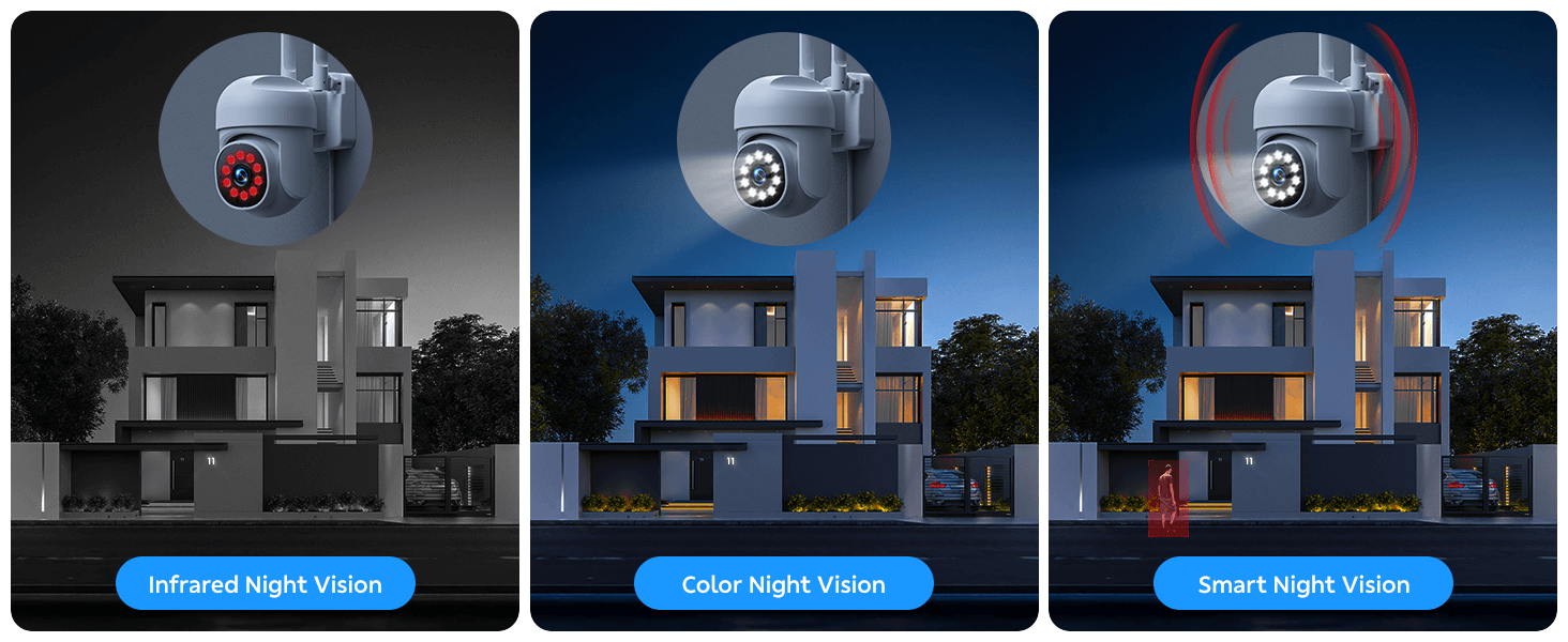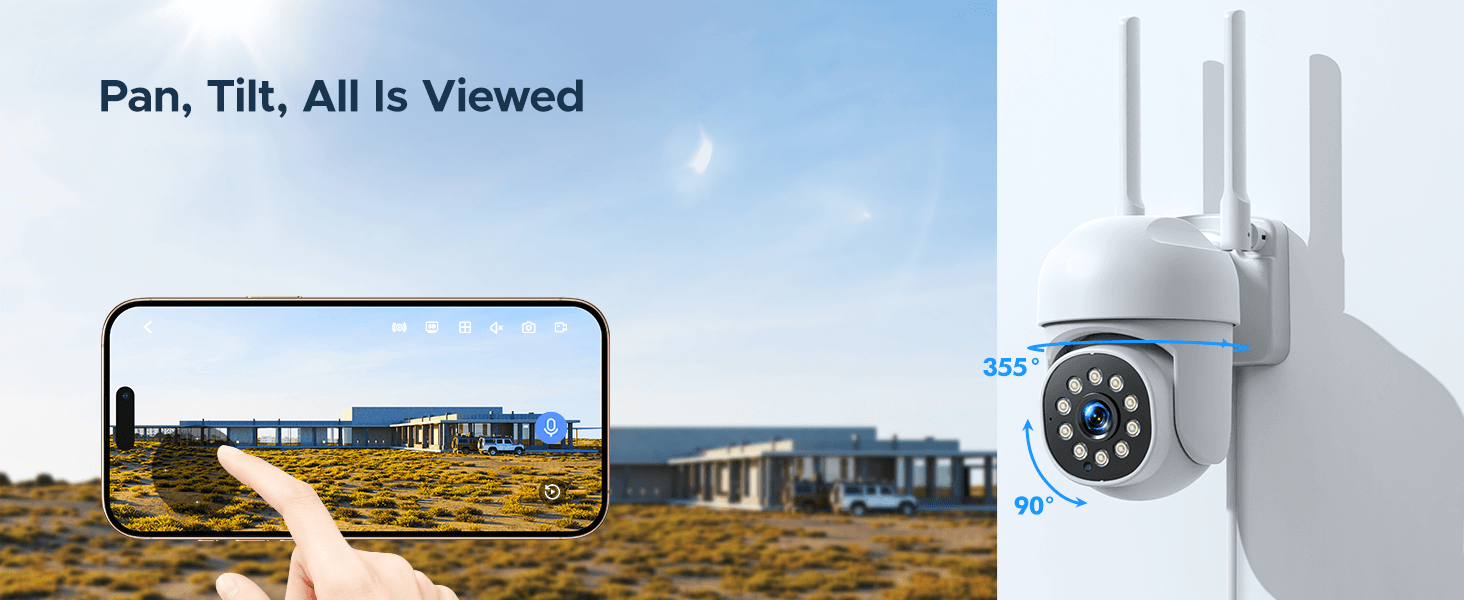 The cameras for home security rotates 350° horizontally and 90° vertically, providing a full 360° field of view without blind spots, capturing every intruder's movement.