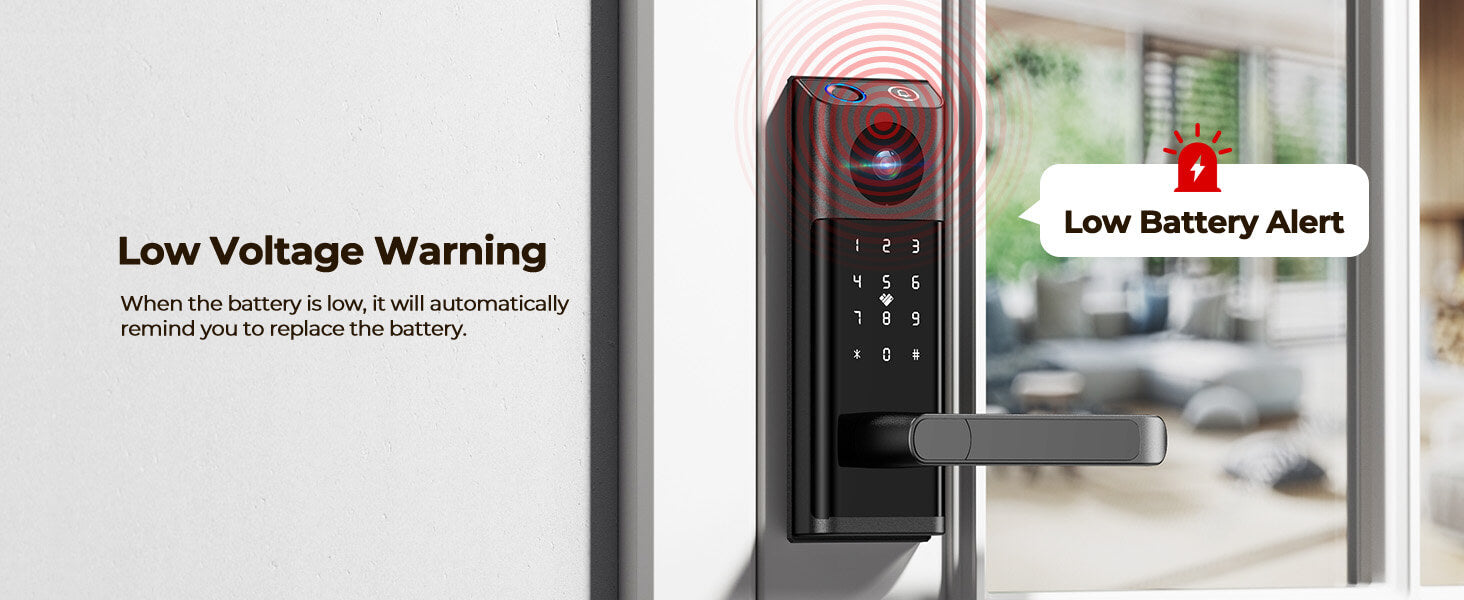 Powered by 4 AA batteries, this smart locks for front door with camera is energy-efficient and provides low-voltage alerts. In a pinch, use a power bank to keep it running. No more worrying about dead batteries—your camera door locks for homes is always ready when you are!