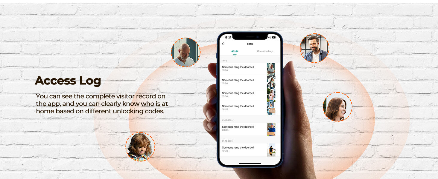 Stay informed and in control of your home access. Easily track visitor activity and view detailed logs to identify who has entered your premises. Enhance your security awareness by monitoring door access history with ease.