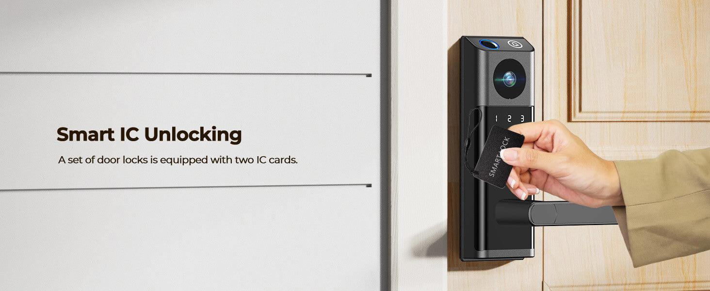 - 5 unlocking methods: fingerprint, passcode, IC key card, mobile app, or physical key.
