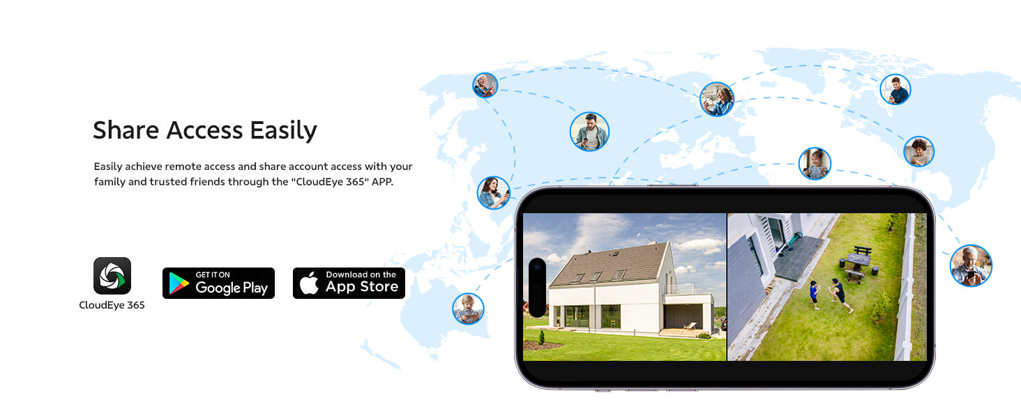 - Support viewing 4 cameras live at the same time in the APP (Cloud Eye 365)